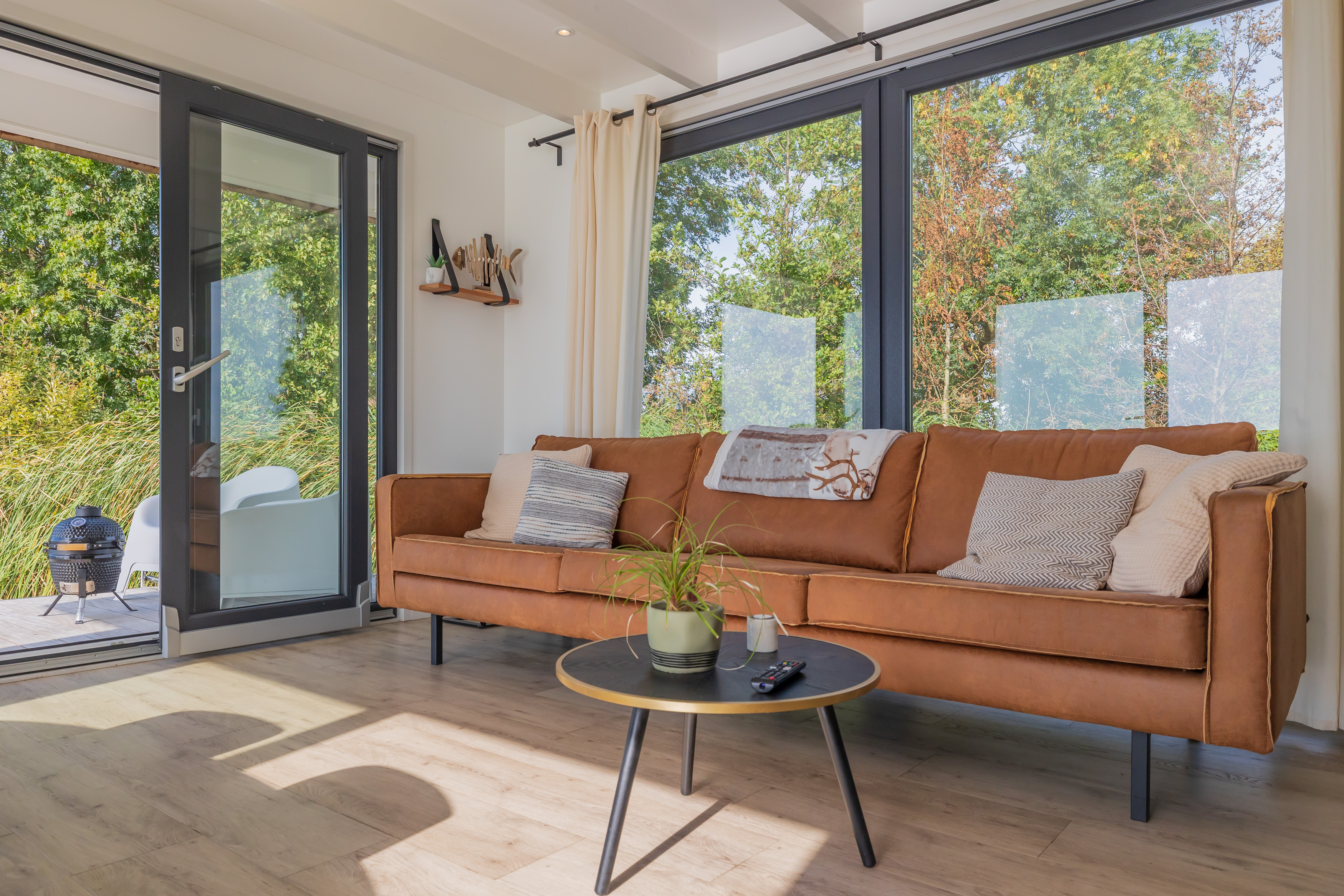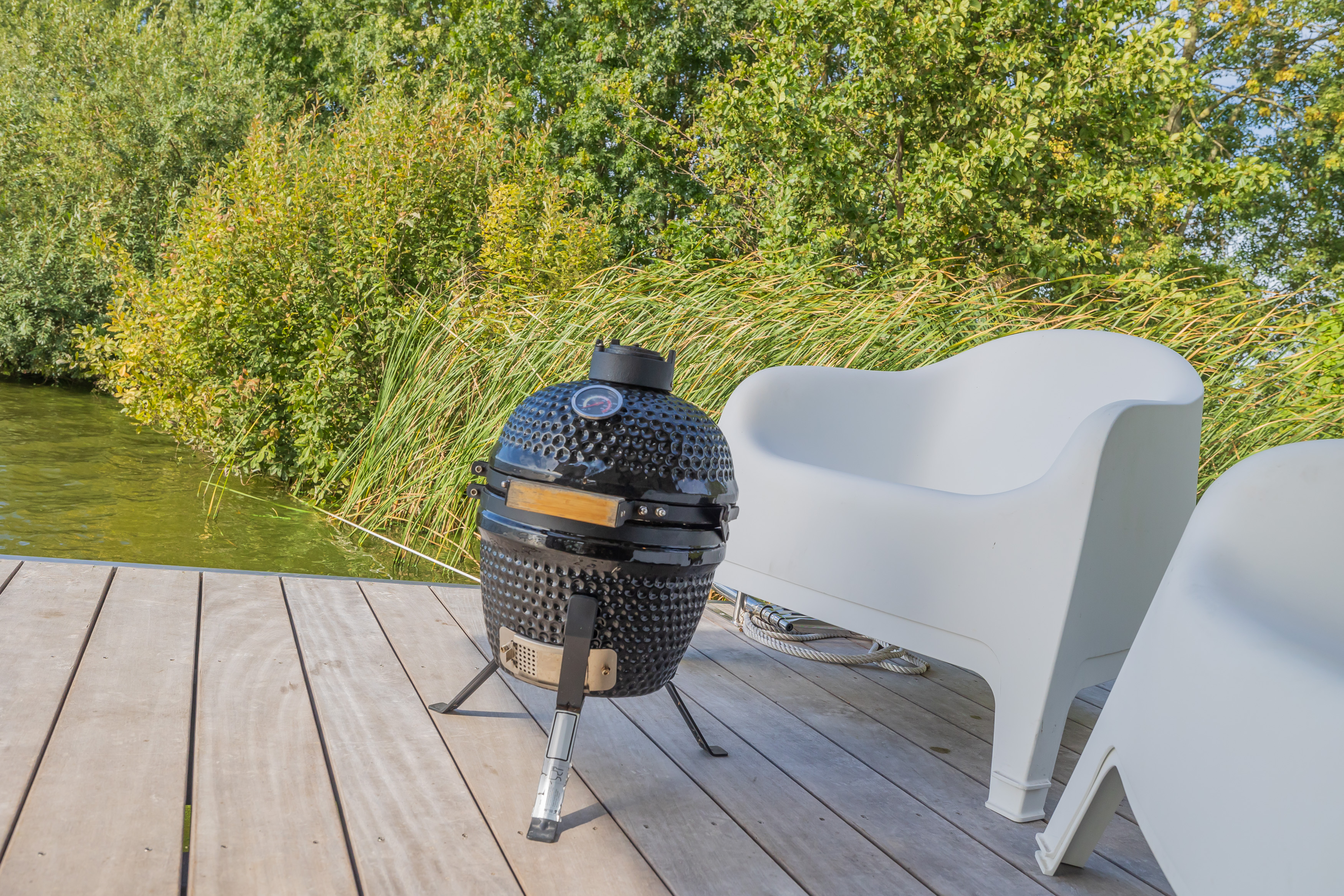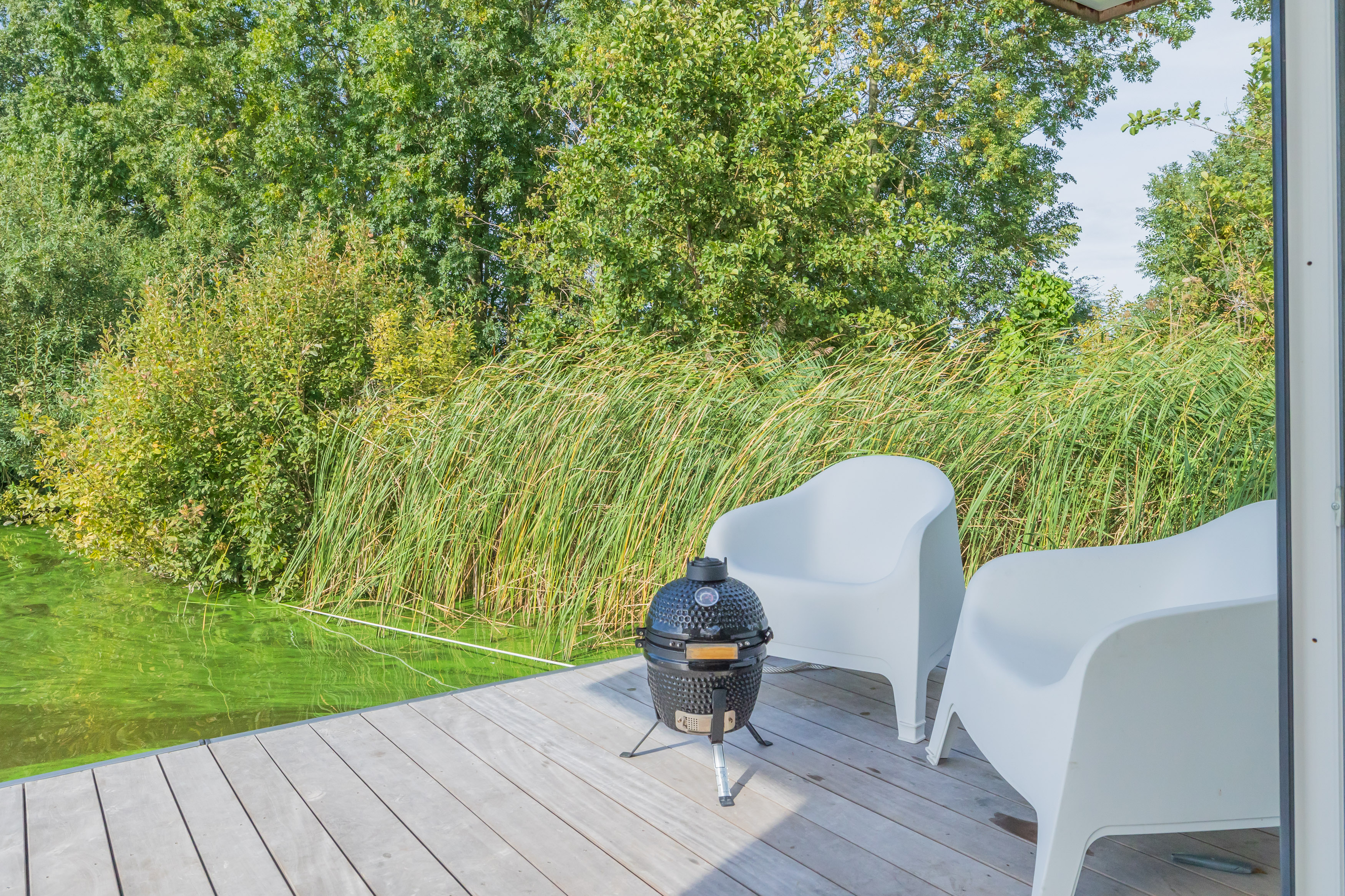 A Surla Houseboat is a sailing summer residence. Our water villas are fully equipped, 100% ecological and self-sufficient. Luxury, comfort and respect for nature come together here. From April/May on the houseboat is docked on open water. This houseboat (built in '22) is fully equipped. We'd love to welcome you as guests on our Surla houseboat to create beautiful memories with this unique experience. There is a spacious living room with a couch, dining table, tv, pellet stove and sliding doors to the front terrace with outdoor chairs. The open plan kitchen is fully equipped with an induction cooker, fridge, oven, dishwasher, kettle and Nespresso coffee machine. There's also a table-top freezer in the utility room. The bathroom is equipped with a shower, sink and a dry toilet. There are 3 bedrooms on the houseboat. Two bedrooms with hotel beds (1.80 x 2.00m), especially designed for Surla Houseboats. The third bedroom has a bunk bed (0.90 x 2.00m). Via outside stairs you can go to the spacious rooftop terrace (24m2) where there is a lounge set to enjoy beautifull sunrises and sunsets. Last but not least: on the back terrace is a warm outdoor shower, great after a swim. Before arrival: The check-in time is between 15.00 and 18.00pm. Earlier check-in is not possible due to cleaning of the houseboat. Meetingpoint: please park your car on the verge at Huigsloterdijk 348 in Buitenkaag. Do not drive directly to this home address, but park for free along the water in the verge. We have a host available: She will take you to the houseboat with the dinghy. Please inform the host your expected arrival time. This host is also available during your stay for questions or emergencies. You will receive her phone number with the check-in instructions one week before arrival. In the summer (wheather permitting), Surla puts the houseboat in a beautiful spot/location on the lake. The houseboat remains in place by means of spud poles. In bad weather conditions, a Surla employee will put the houseboat in a sheltered place (De Keverhaven). This can also happen during your rental period, because we don't want to take any risks. Surla Tender (Dinghy): During your stay we provide an dinghy. This aluminum tender is included during the rental of the houseboat. It is important that you start the tender with the trottle in Neutral. Do you want to lock the tender when you are not using it? Also at night? Sail slowly! Place the tender at the front or back of the houseboat. Gently moor so that there is no damage to the houseboat or tender. We will charge for damage immediately. The tender is fully fueled upon your arrival. The request is to fill it up again before checking out (Gasoline 98), so that the next guests also have a full tank. You can refuel at Bsl Watersport Huigsloterdijk 400 in Buitenkaag or at Van Schie Watersports: Zijldijk 11 in Warmond. You can also put the amount on the table in cash: 40 euros for an empty tank and 20 euros for half a tank. If the tender has not been refueled and no money has been left behind on departure, we will charge the costs afterwards. NOTE: * Surla rents out several houseboats at different locations. It is possible that the location, the floorplan of the houseboat and the interior in the photos differs from the actual houseboat. All our houseboats were built in 2022-2023. * We have a camera that faces outward, and it hangs outside on the front deck. This turns off as soon as the guests come on board. So it is purely for safety if there are no guests. There are no cameras inside. *Swimming certificates are highly recommended. We will not recommend the houseboat for people with walking difficulties. *We advise you to do necessary shopping before boarding. Standard on board is a few Nespresso coffee capsules, milk, sugar, tea, oil, pepper, salt and a few toilet rolls. We have towels and the beds are made for your arrival. *There is no public transport nearby. Everything has to be done with the dinghy, such as visiting a restaurant or a supermarket. *We don't let our guests sail with the Surla houseboat themselves, but a dinghy is included in the rent. Sail at walking pace with the dinghy, we are guests on the water. Any fines are for your own account. *No parties allowed. Our Surla Houseboats are built sustainably and are 100% self-sufficient. We have ingenious systems on board that allow you to recreate without going on shore power, and we also have filter systems that mean we don't have to have water tanks on board. We are guests on the water and have done everything possible to implement 100% off-grid and ecologically responsible solutions. We would love to welcome you as guests to create beautiful memories with this unique experience.