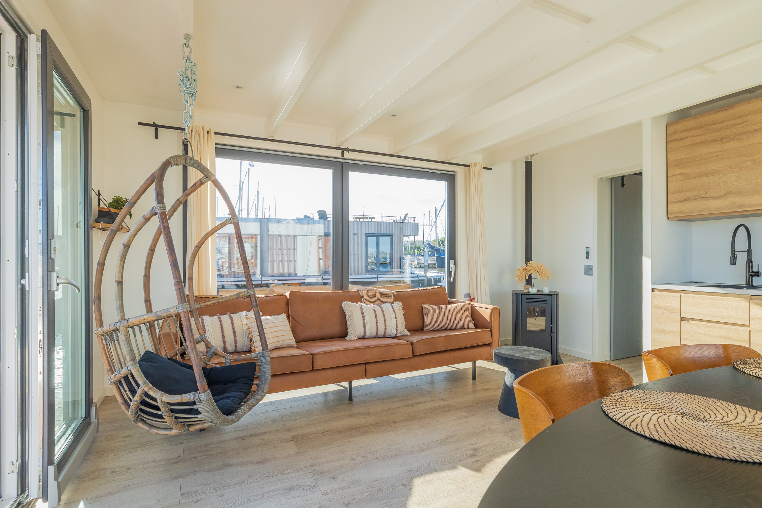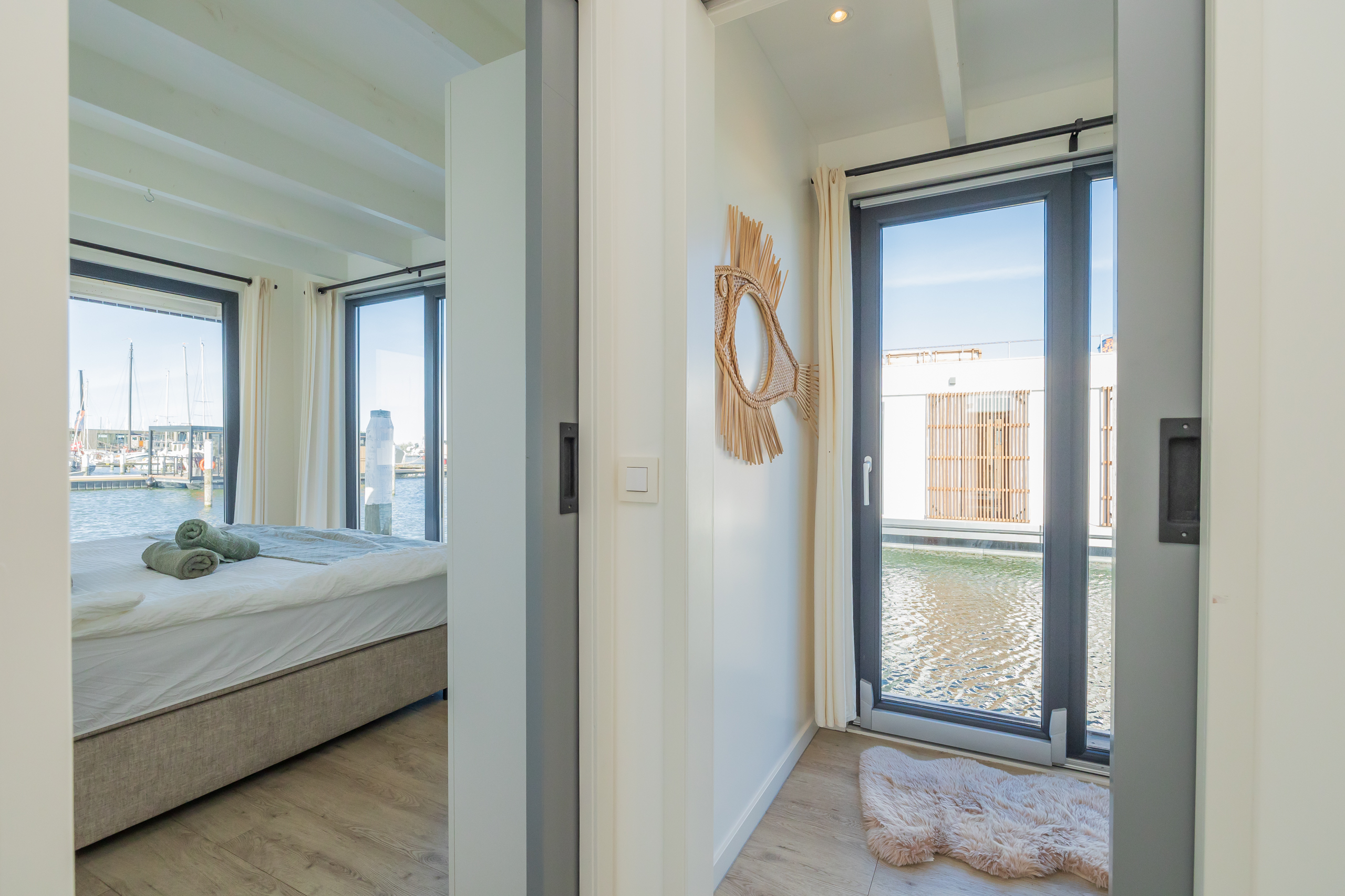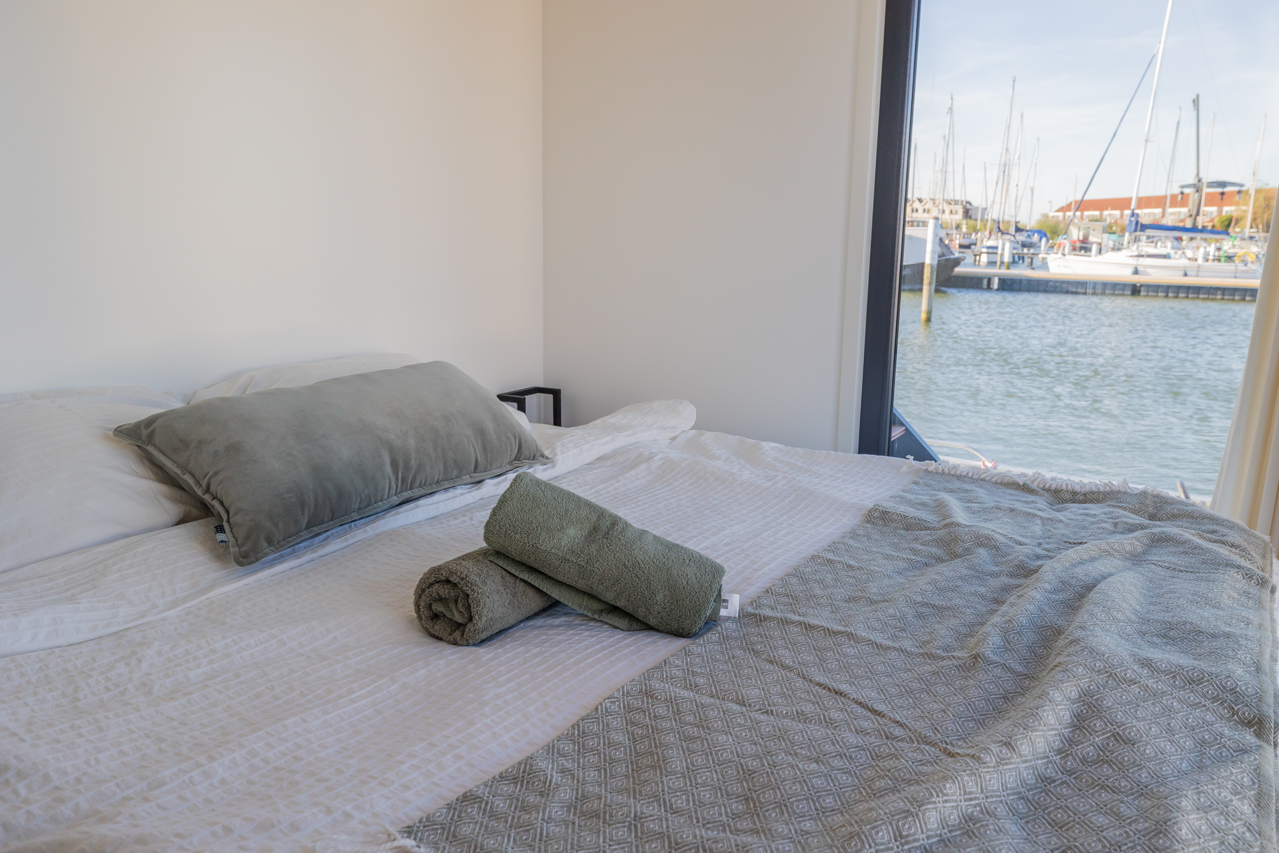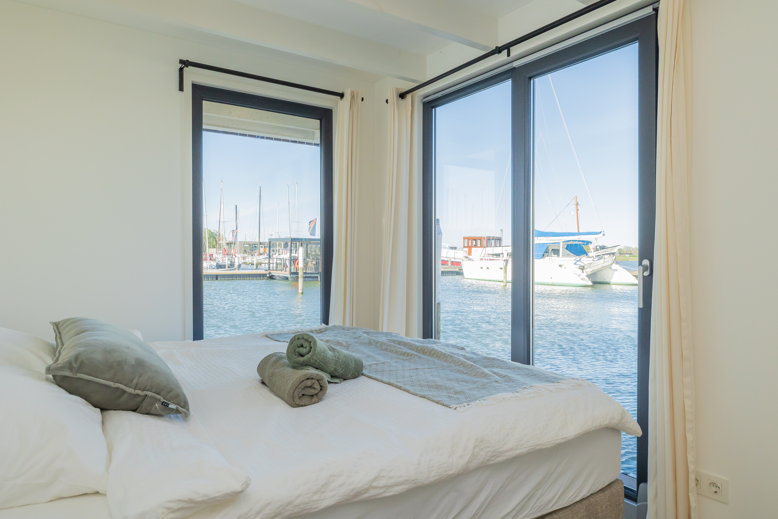 A Surla Houseboat is a sailing summer residence. Our water villas are fully equipped, 100% ecological and self-sufficient. Luxury, comfort and respect for nature come together here. This houseboat (built in '22) is fully equipped. The Surla Houseboat is 15 meters long and 6 meters wide. A total area of 84m2 excluding the roof terrace. The living room and kitchen are 25m2, and equipped with 3 large sliding doors, so you always have a phenomenal view. There is a spacious living room with a couch, dining table, tv and sliding doors to the front terrace with outdoor chairs. The open plan kitchen is fully equipped with an induction cooker, fridge, oven, dishwasher, kettle and Nespresso coffee machine. There's also a table-top freezer in the utility room. The bathroom is equipped with a shower, sink and a (dry) toilet. There are 3 bedrooms on the houseboat. Two bedrooms with hotel beds (1.80 x 2.00m), especially designed for Surla Houseboats. The third bedroom has a bunk bed (0.90 x 2.00m). Via outside stairs you can go to the spacious rooftop terrace where there is a lounge set to enjoy beautifull sunrises and sunsets. Last but not least: on the back terrace is a warm outdoor shower, great after a swim. Surla has check-in hosts available, here name is Natasja. She will welcome you and guide you to the houseboat. It is nice for our hosts that you indicate early what your expected arrival time is. You will receive the host's telephone number in the instructions. You will receive this via email more than a week before arrival. Location houseboat: In the summer (wheather permitting), Surla puts the houseboat in a beautiful spot/location on the lake. The houseboat remains in place by means of spud poles. In bad weather conditions, a Surla employee will put the houseboat in a sheltered place in the marina of Monnickendam. This can also happen during your rental period, because we don't want to take any risks. You can park your car in the marina of Monnickendam (free parking). After passing the entrance gate. Drive straight, after the white building, the 2nd road to the left. At the end of the road you can park your car. Surla Tender (Dinghy): During your stay we provide an dinghy. This aluminum tender is included during the rental of the houseboat. It is important that you start the tender with the trottle in Neutral. Do you want to lock the tender when you are not using it? Also at night? Sail slowly! Place the tender at the front or back of the houseboat. Gently moor so that there is no damage to the houseboat or tender. We will charge for damage immediately. The tender is fully fueled upon your arrival. The request is to fill it up again before checking out (Gasoline 98), so that the next guests also have a full tank. You can buy gasoline at the Texaco in the village or you can buy a jerry can from our host Uwe. You can also put the amount on the table in cash: 40 euros for an empty tank and 20 euros for half a tank. If the tender has not been refueled and no money has been left behind on departure, we will charge the costs afterwards. Note: * We don't let our guests sail with the Surla houseboat themselves, but a dinghy is included in the rent. Sail at walking pace with the dinghy, we are guests on the water. Any fines are for your own account. Note: * We don't let our guests sail with the Surla houseboat themselves, but a dinghy is included in the rent. Sail at walking pace with the dinghy, we are guests on the water. Any fines are for your own account. you will have to pay extra for the petrol. *No parties allowed. * We have a camera that faces outward, and it hangs outside on the front deck. This turns off as soon as the guests come on board. So it is purely for safety if there are no guests. There are no cameras inside. * Surla rents out several houseboats at different locations. It is possible that the location, the floorplan of the houseboat and the interior in the photos differs from the actual houseboat. All our houseboats were built in 2022-2023. * Swimming certificates are highly recommended. We will not recommend the houseboat for people with walking difficulties. * We advise you to do necessary shopping before boarding. Standard on board is a few Nespresso coffee capsules, milk, sugar, tea, oil, pepper, salt and a few toilet rolls. We have towels and the beds are made for your arrival. Our Surla Houseboats are built sustainably and are 100% self-sufficient.We have ingenious systems on board that allow you to recreate without going on shore power, and we also have filter systems that mean we don't have to have water tanks on board.We are guests on the water and have done everything possible to implement 100% off-grid and ecologically responsible solutions. We would love to welcome you as guests to create beautiful memories with this unique experience.