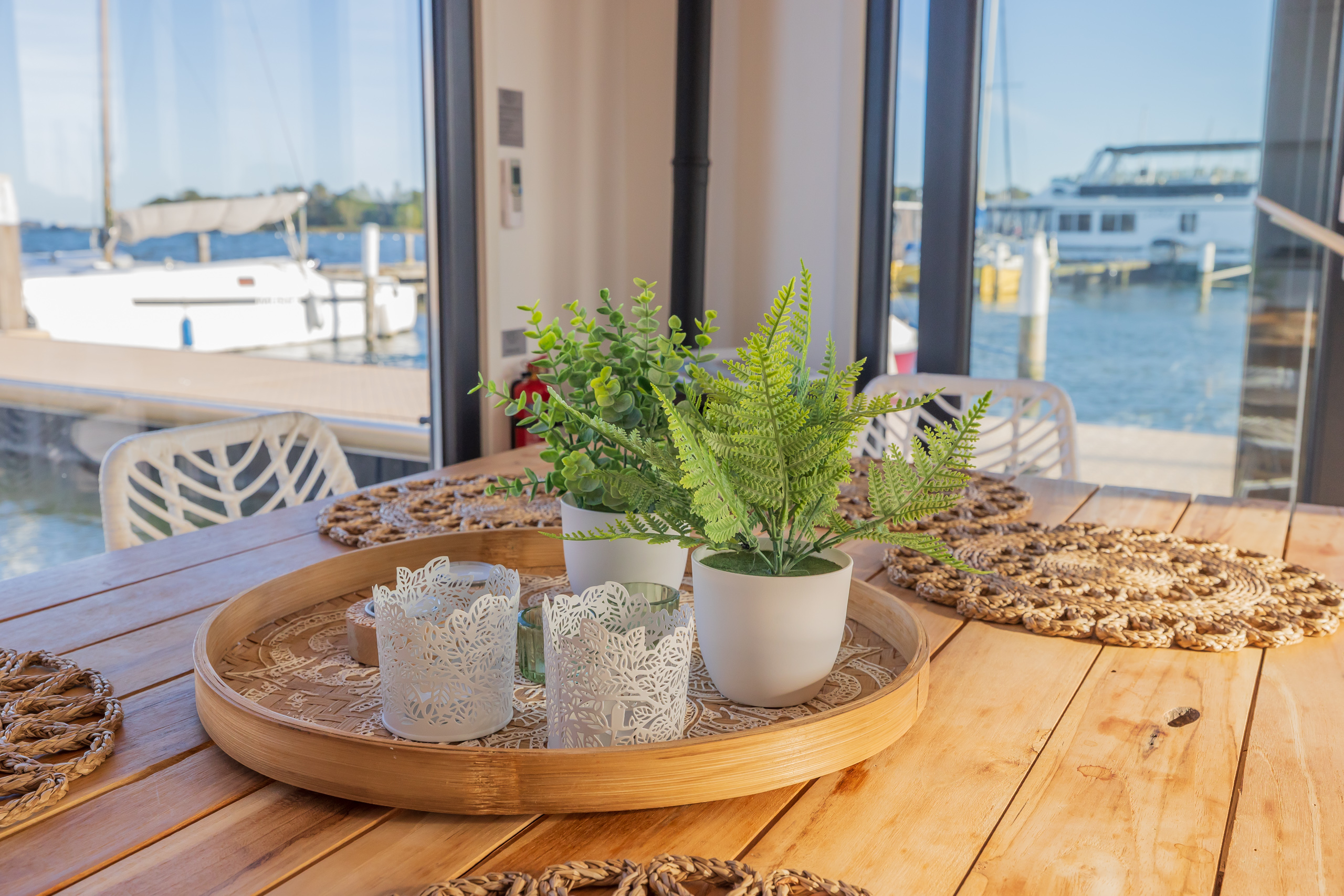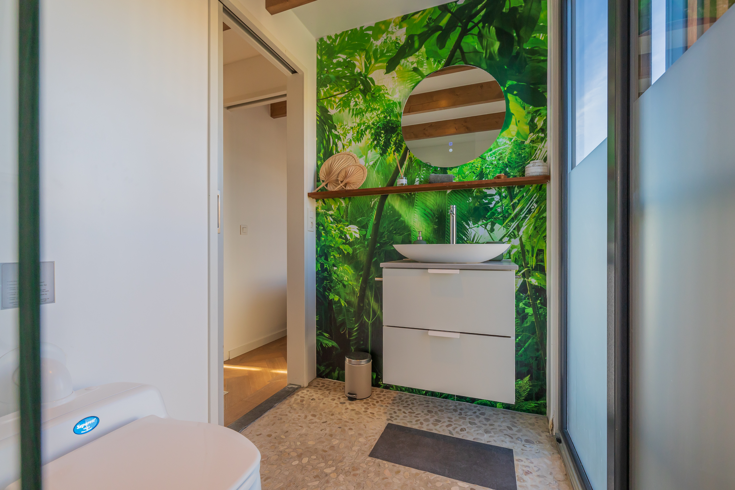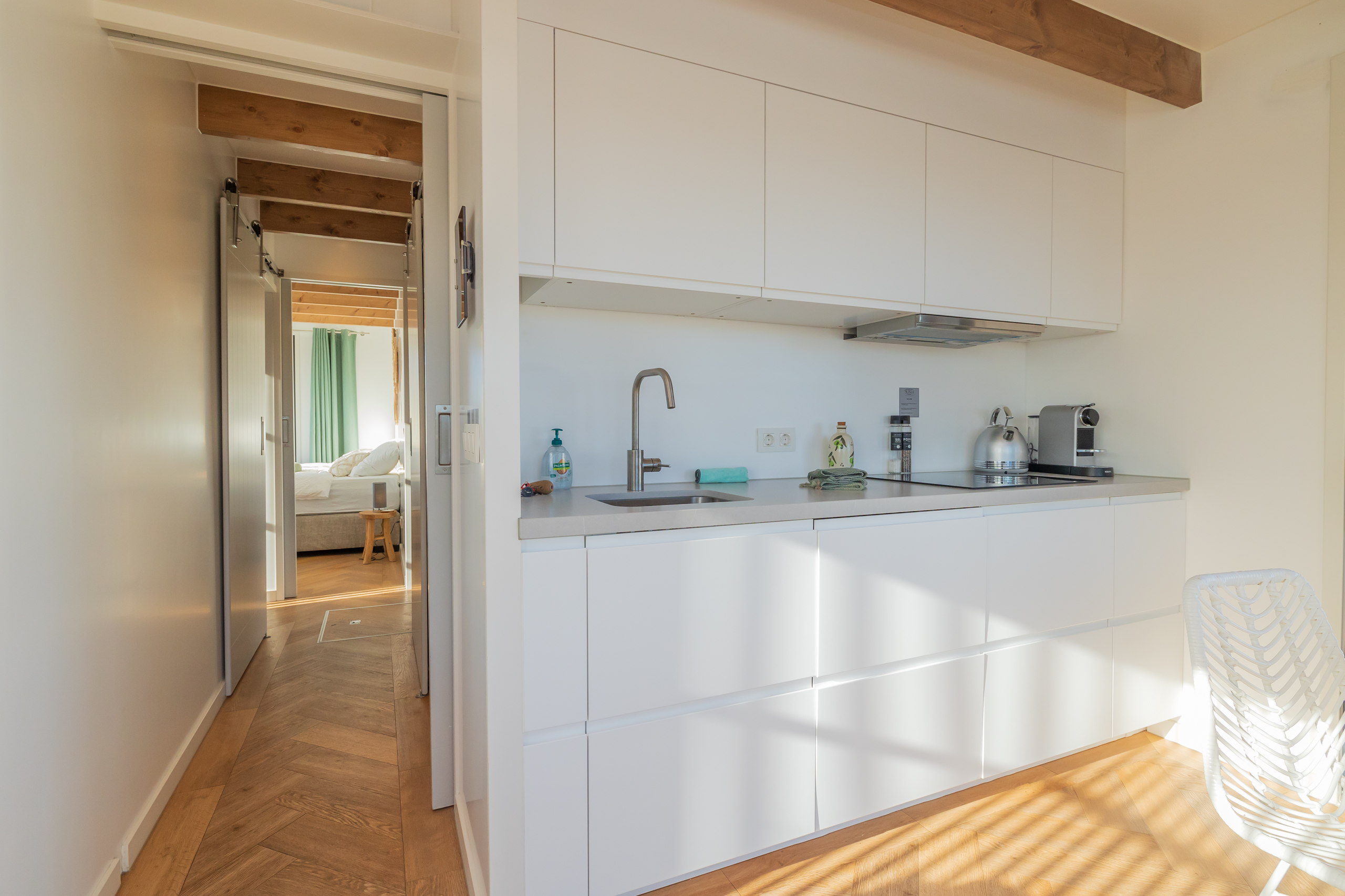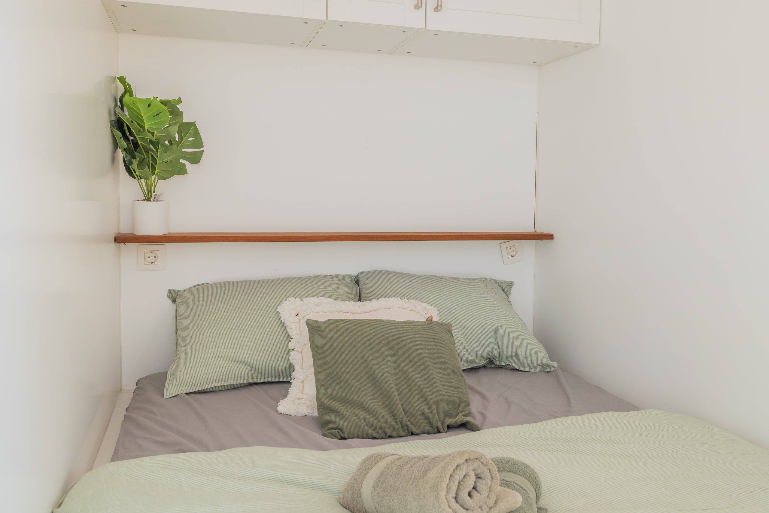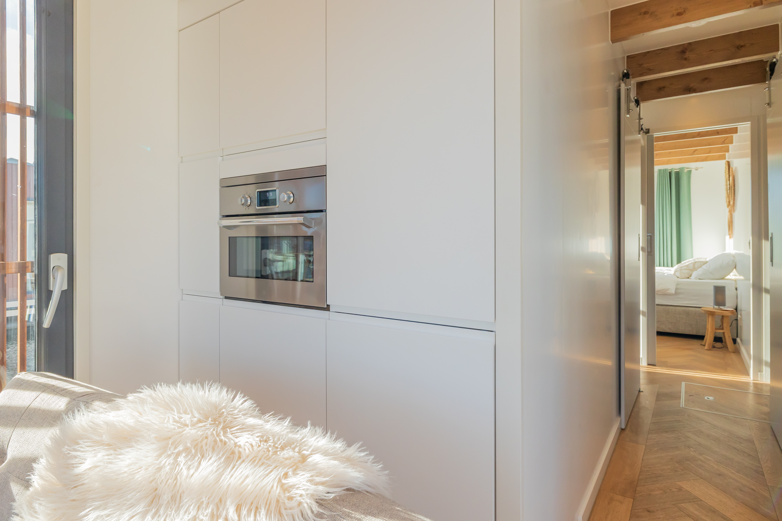 A Surla Houseboat is a sailing summer residence. Our water villas are fully equipped, This houseboat, our LUXURY version, is a special one from the Surla fleet. Built in 2023 with a SAUNA. Decorated in Ibiza style and fully equipped. There is a spacious living room with a couch, dining table, tv, Sonos sound system and sliding doors to the front terrace with outdoor chairs. The open plan kitchen is fully equipped with an induction cooker, fridge, oven, dishwasher, kettle and Nespresso coffee machine. There's also a table-top freezer in the utility room. The bathroom is equipped with a shower, sink and a (dry) toilet. There are 3 bedrooms on the houseboat. Two bedrooms with hotel beds (1.80 x 2.00m and 1.60 x 2.00m), especially designed for Surla Houseboats. The third bedroom has a cosy (1.40 x 2.00m) bed. Via outside stairs you can go to the spacious rooftop terrace where there is a lounge set to enjoy beautiful sunrises and sunsets. On the back terrace is a warm outdoor shower, great after a swim. And last but not least, the sauna! Host: Surla has check-in host, here name is Natasja. She will welcome you and guide you to the houseboat. It is nice for our hosts that you indicate early what your expected arrival time is. You will receive the host's telephone number in the instructions. You will receive this via email more than a week before arrival. Location: You can park your car in the marina of Monnickendam (free parking). After passing the entrance gate. Drive straight, after the white building, the 2nd road to the left. At the end of the road you can park your car. Location houseboat: In the summer (wheather permitting), Surla puts the houseboat in a beautiful spot/location on the lake. The houseboat remains in place by means of spud poles. In bad weather conditions, a Surla employee will put the houseboat in a sheltered place in the marina of Monnickendam. This can also happen during your rental period, because we don't want to take any risks. Surla Tender (Dinghy): During your stay we provide an dinghy. This aluminum tender is included during the rental of the houseboat. It is important that you start the tender with the trottle in Neutral. Do you want to lock the tender when you are not using it? Also at night? Sail slowly! Place the tender at the front or back of the houseboat. Gently moor so that there is no damage to the houseboat or tender. We will charge for damage immediately. The tender is fully fueled upon your arrival. The request is to put the amount on the table in cash: 40 euros for an empty tank and 20 euros for half a tank. If the tender has not been refueled and no money has been left behind on departure, we will charge the costs afterwards. Note: * We don't let our guests sail with the Surla houseboat themselves, but a dinghy is included in the rent. Sail at walking pace with the dinghy, we are guests on the water. Any fines are for your own account. Note: * We don't let our guests sail with the Surla houseboat themselves, but a dinghy is included in the rent. Sail at walking pace with the dinghy, we are guests on the water. Any fines are for your own account. * No parties or filming allowed. * We have a camera that faces outward, and it hangs outside on the front deck. This turns off as soon as the guests come on board. So it is purely for safety if there are no guests. There are no cameras inside. * Surla rents out several houseboats at different locations. It is possible that the location, the floorplan of the houseboat and the interior in the photos differs from the actual houseboat. All our houseboats were built in 2022-2023. * Swimming certificates are highly recommended. We will not recommend the houseboat for people with walking difficulties. * We advise you to do necessary shopping before boarding. Standard on board is a few Nespresso coffee capsules, milk, sugar, tea, oil, pepper, salt and a few toilet rolls. We have towels and the beds are made for your arrival. Sauna: This houseboat has a wood sauna on board, which is located at the back of the houseboat. Surla provides wood, firelighters and kindling wood. It is the tenant's responsibility to use the sauna in a proper manner. Please understand that you work with open fire, do not use any other flammable substances than provided by Surla (firelighters, kindling and firewood). The use of the sauna is entirely at your own risk. Our Surla Houseboats are built sustainably and are 100% self-sufficient.We have ingenious systems on board that allow you to recreate without going on shore power, and we also have filter systems that mean we don't have to have water tanks on board.We are guests on the water and have done everything possible to implement 100% off-grid and ecologically responsible solutions. We would love to welcome you as guests to create beautiful memories with this unique experience.